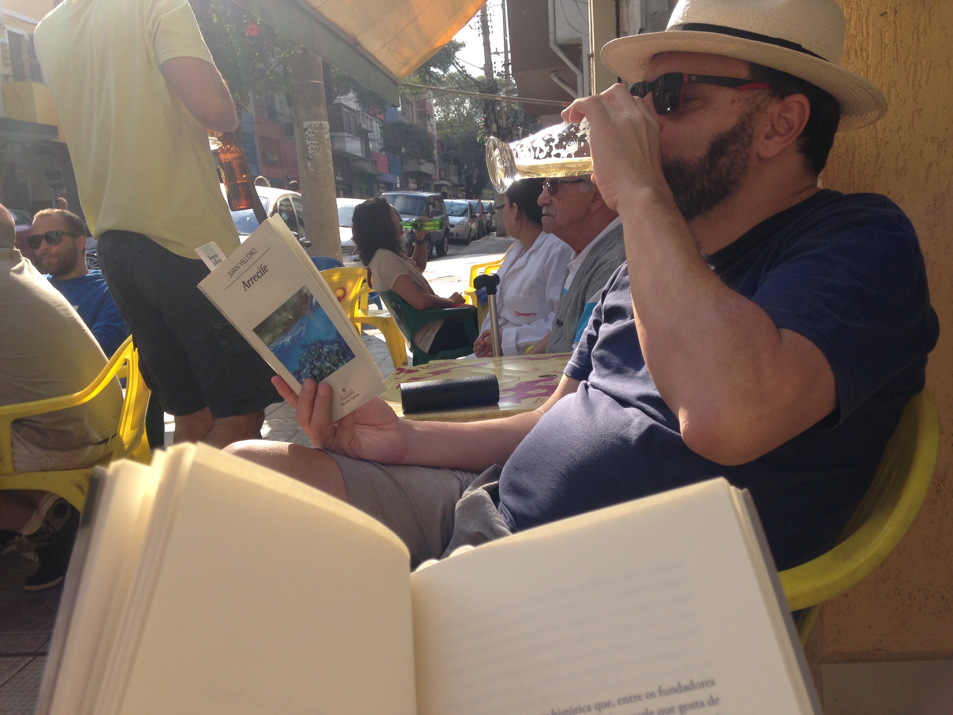 Às vezes saímos cada um com um livro para cafés, restaurantes, parques, praias. Às vezes, isso inclui meus dois enteados. Imagine, quatro criaturas sentadas juntas, mas cada uma em sua própria bolha de leitura. Sinto que algumas pessoas olham enviesado, estranhando o “isolamento”. De longe, parece uma família que não tem assunto pra conversar. Quando fazemos isso, estamos criando assunto pra conversar, e muito, em centenas de outras oportunidades. Sem falar que ler junto é uma ótima maneira de observar, em primeira mão, as reações que um livro causa na outra pessoa. Os risos contidos, as gargalhadas, as revoltas, os estranhamentos. Ler junto é combustível.