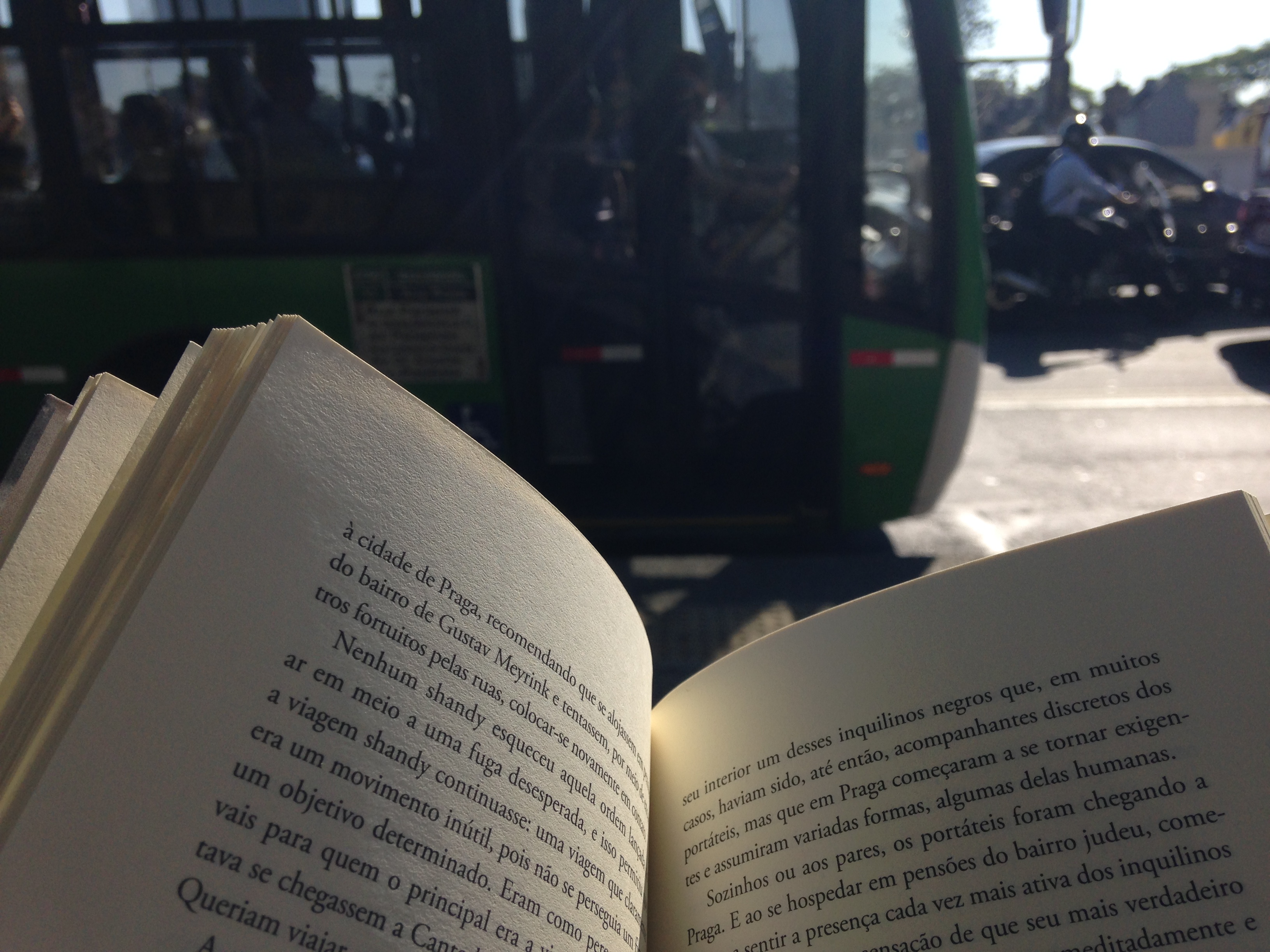 Tem gente que perde tempo no transporte público, eu digo que ganho. Em vez de passar horas no volante praguejando contra o trânsito, circular de ônibus e metrô é garantia de tempo disponível para leitura. Em média, a viagem no busão dura uns 45 minutos, só uns 10 minutos mais do que se eu fosse ao trabalho de carro. São 45 minutos diários dedicados exclusivamente à leitura, contra 35 minutos que seriam perdidos ao volante. A escolha é fácil, né não? Faço horários alternativos, então também tenho a vantagem de quase sempre ir sentada o caminho inteiro.