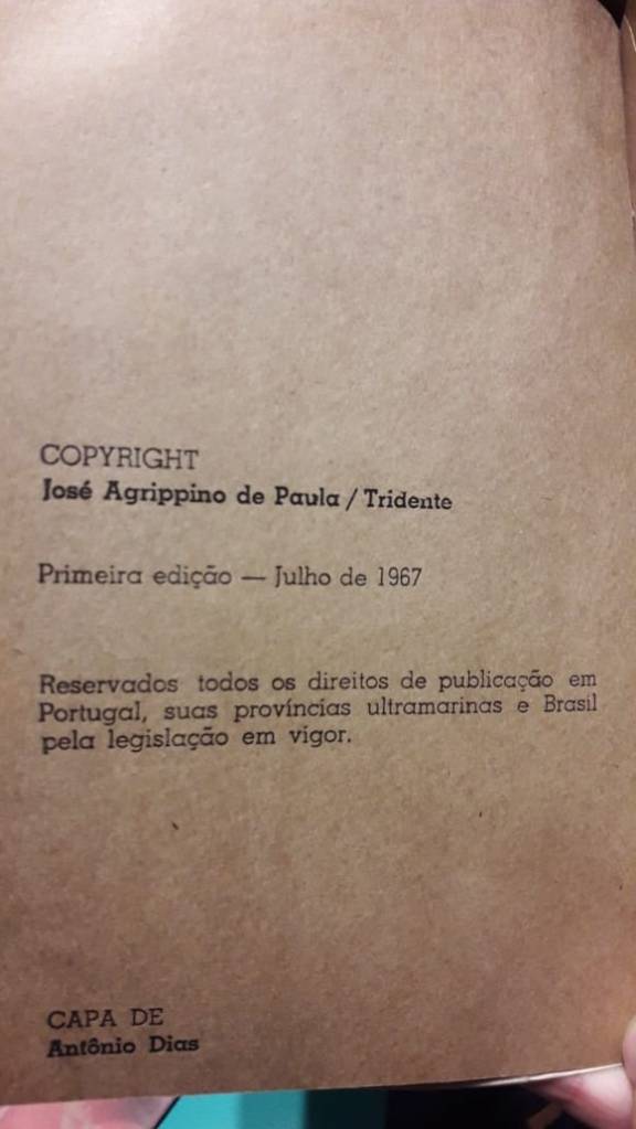 Fiquei anos com esse livro na cabeça e a ideia de que um dia ainda o leria. Até que Renata garimpou em um sebo essa primeira edição, em perfeito estado, com a capa do artista plástico Antonio Dias e o miolo em papel jornal de gramatura alta, que envelheceu com esse tom amarronzado, fazendo um belo contraste com a impressão, que parece toda em negrito.