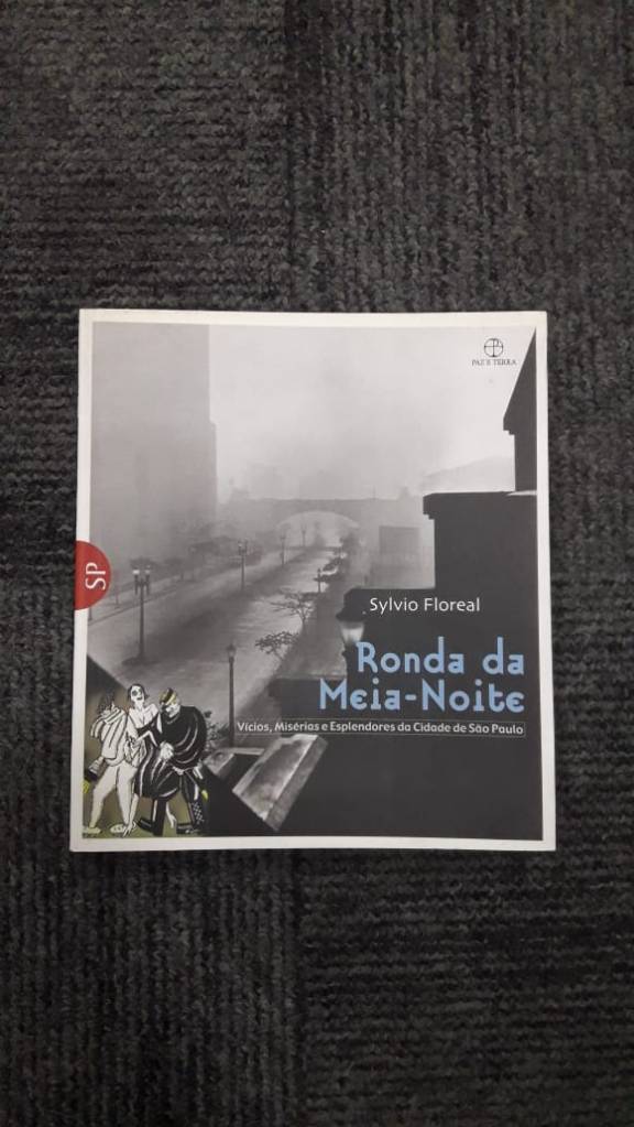 A história da leitura de Ronda da meia-noite, livro do santista Sylvio Floreal com seleção de crônicas publicadas em jornais paulistanos dos anos 1920 é no mínimo curiosa. A edição faz parte da “Coleção São Paulo”, da Editora Paz e Terra, cujos volumes de crônicas e ensaios, todos do começo do século XX, foram republicados no ano de 2003, já dentro dos preparativos para o aniversário de 450 da cidade de São Paulo. Nosso exemplar de Ronda foi pego gratuitamente por Renata, há mais de 10 anos, em uma feira de livro no Diário de Pernambuco e dormiu na prateleira da biblioteca dela no Recife, viajou mais de 2 mil quilômetros, e teve dois endereços em São Paulo até que, movido pela curiosidade, encontrei o livro em meio a títulos de história. E foi ao fim da leitura que transportamos a coletânea para a estante de literatura brasileira, seu verdadeiro lugar.
