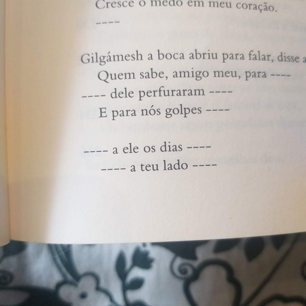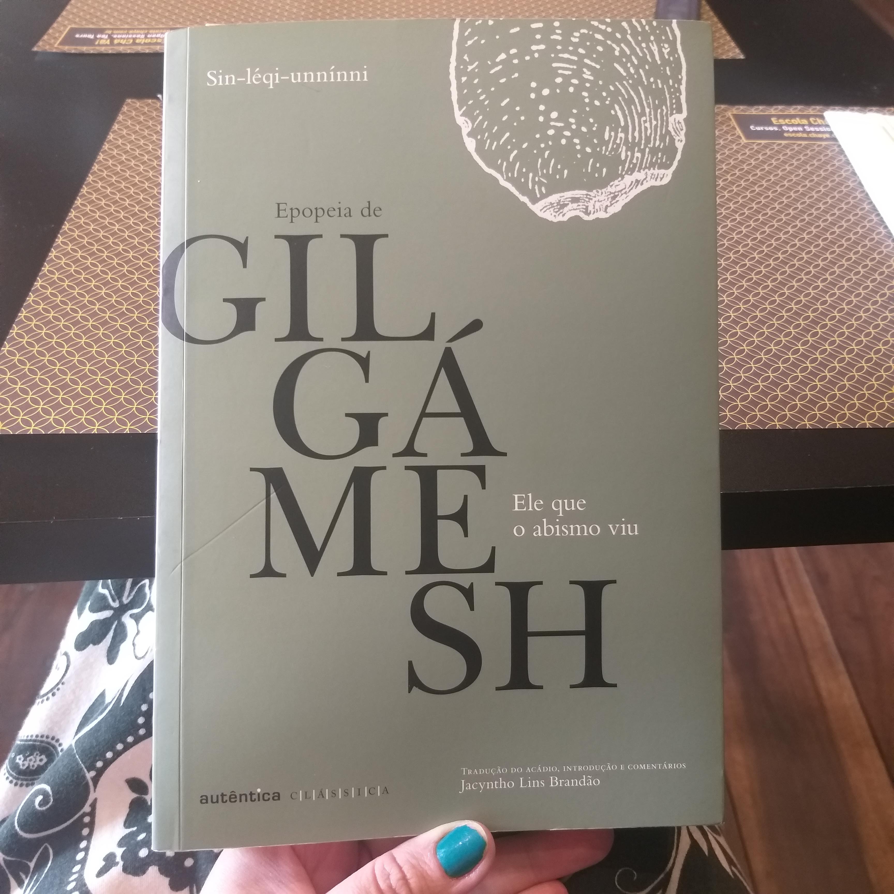 Meu exemplar da Epopeia de Gilgámesh é o da editora Autêntica, publicado em 2018, com tradução para o português direto do acádio por Jacyntho Lins Brandão. Comprei o meu na minha ex-vizinha livraria Combo Café e Cultura, que mantinha aqui em Pinheiros um minúsculo espaço dentro de um contêiner dividido com uma máquina de espresso, mas com uma densidade de boa literatura difícil de equiparar, mesmo em São Paulo.