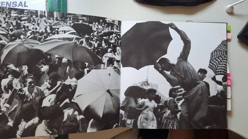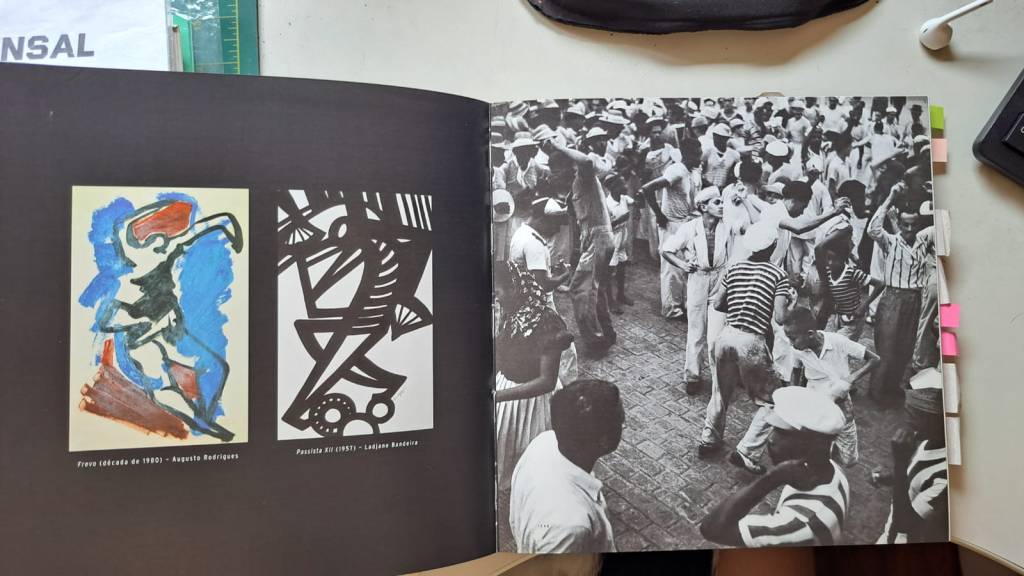 Já que não vou ao Recife, mato um pouco da saudade folheando o livro Frevo: 100 anos de folia, parte de um projeto mais amplo liderado pela Prefeitura do Recife para o centenário da palavra frevo. É uma edição incrível ilustrada principalmente com fotos feitas na cidade por Pierre Verger, no carnaval de 1947, e por Marcel Gautherot, em 1957. Há também obras de arte, rótulos de vinis, mapas e ilustrações de jornais.