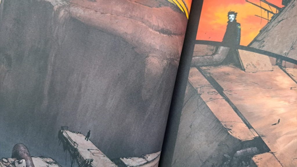 O Logan de Nihei é mais hábil do que forte, uma figura magra que por vezes lembra Edward, Mãos de Tesoura, mas cuja potência está nos movimentos orgânicos e na expressão dos olhos, ainda que desenhista não caia nunca no truque barato de fazer closes tipo Sérgio Leone.